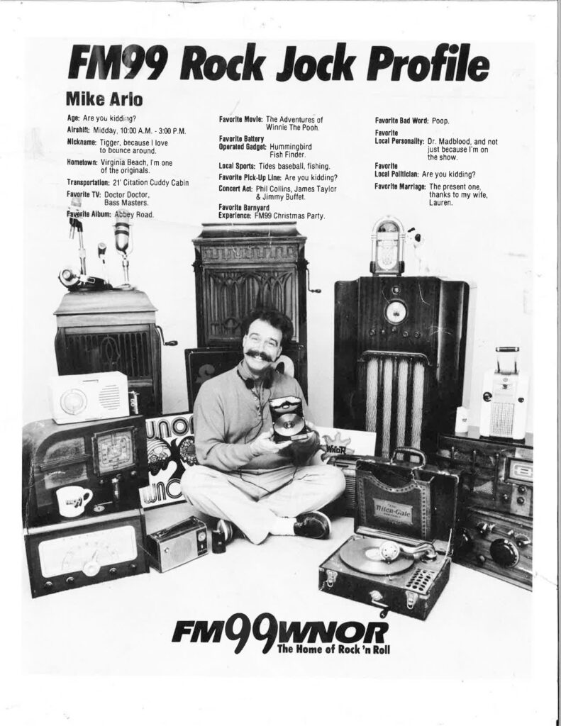 Arlo did his first air shift on FM99 WNOR in 1975 and took over the midday time slot, where he has made his mark, in 1981. In February of 1996, Arlo moved from FM99 to sister station Classic Rock 106.9 The Fox (WAFX), bringing “Arlo’s Electric Lunch” and legions of loyal fans with him.