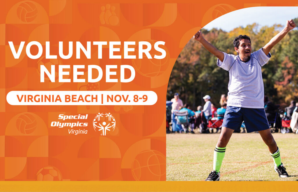 Special Olympics is coming to Virginia Beach. More than 1,200 athletes from across Virginia will compete in soccer, golf, bocce, and more during Fall Championships on November 8 and 9. Be part of the experience and volunteer today.