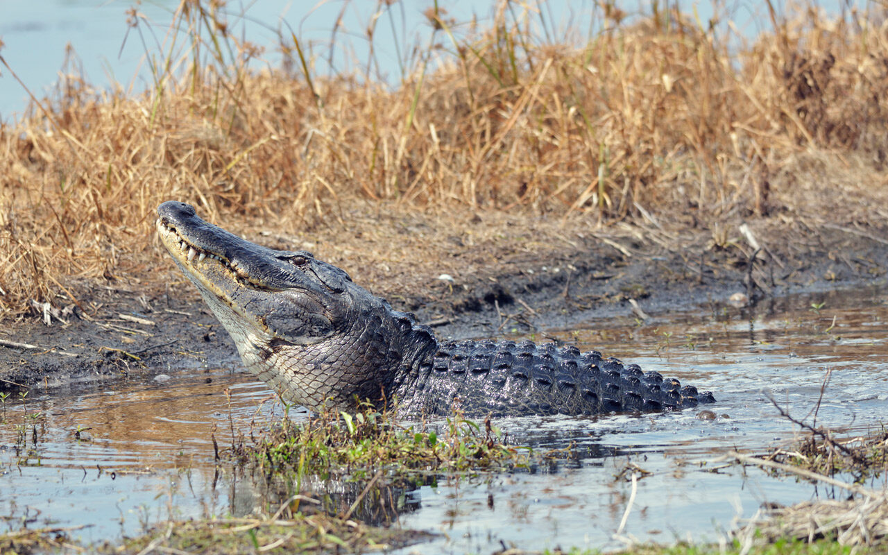 Cyclist gets a Little too Close to Alligators on the Trail This guy gets way too close to the gators for my comfort.