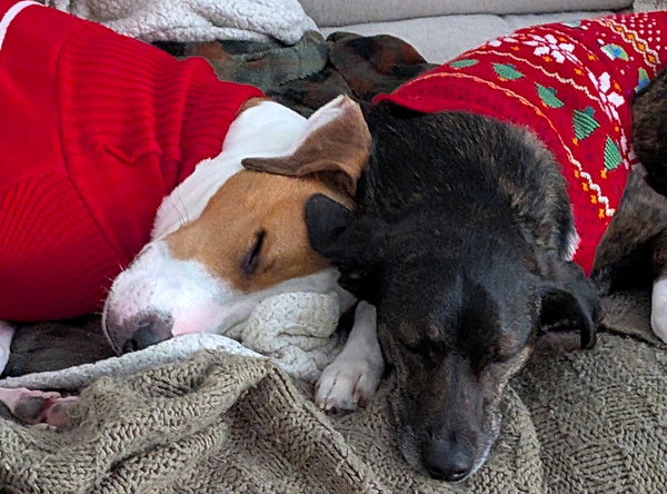 | Two couch hounds napping between meals! |