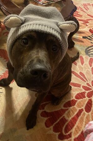 Rokki is a very hyper 1 year old Pitt/Mastiff. He loves playing with sticks and rocks. He loves to fling pinecones into the air!! We love our Rokki Road Icecream.