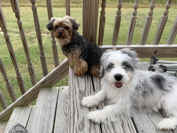 These two fur kids are a trip. They bark at anything that goes up and down our lane! They both LOVE ice cream and chicken! They also like to chase Lilly our cat around the house! And they both love their doggie cookies!!