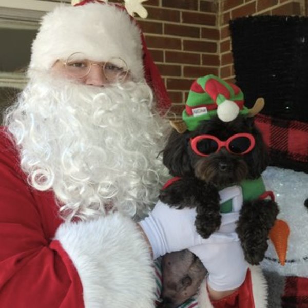 This is his annual holiday picture taken by his groomer. He is named for the band, Toto.