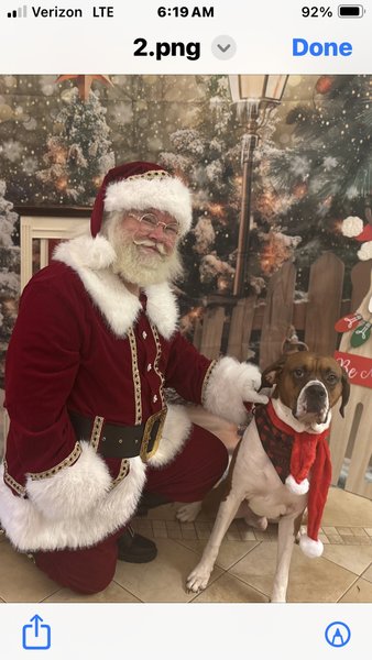 This is his annual holiday picture taken by his groomer. He is named for the band, Toto.