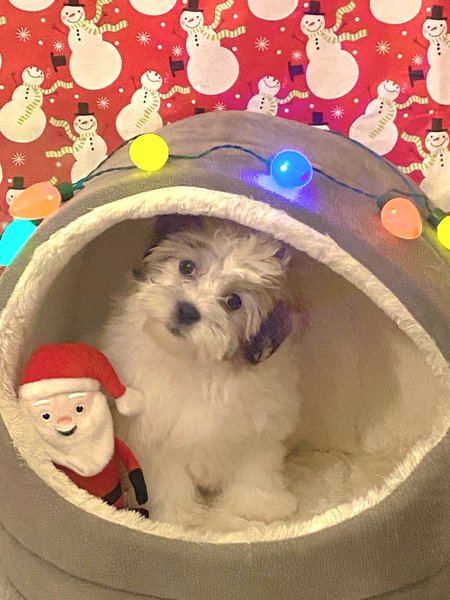 | My name is Milo, 12 weeks old, shitz tsu/ bichon frise. My very first Christmas, let’s hope it’s a good one!! |